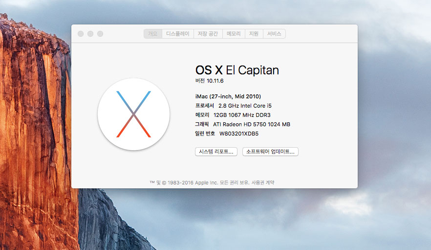 맥os 엘캐피탄 설치됨