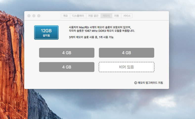 메모리를 12기가로 올렸습니다