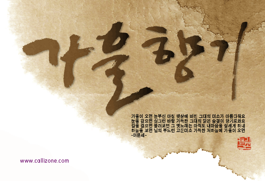 [직접쓴 캘리} 가을향기 callizone 일반 1 9522 2007.10.02 14:07 http://www.callizone.com/home/index.php + 572 가을이 익어가고 있습니다. 가을을 음미하면서 한번 만들어 보았습니다. 회원님들 감기조심 하세요^^