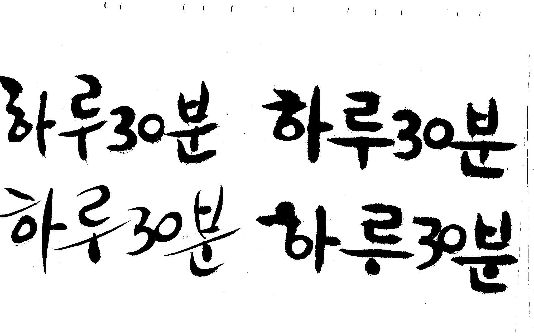 캘리부탁드려요 김철호 일반 0 6879 2008.12.31 13:43 > > 하루30분 <------- 이걸 캘리로 부탁드립니다 > 희망찬 새해 되세요... 스캔이 삐딱하게 되어 손좀 보셔야겠네요..