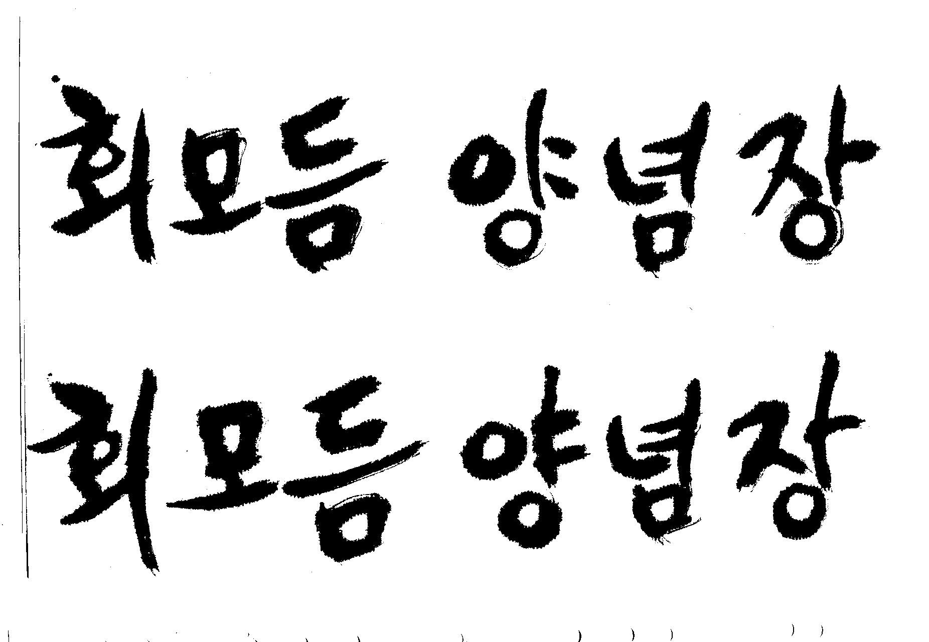 캘리 요청] 부탁드립니다. 김철호 일반 1 6537 2009.06.03 12:13 > > 첨부한 이미지에 보이시는 캘리와 유사한 형태로 > 부탁드립니다. > 내용은 " 회모듬 양념장 " 입니다. > > 도와주십시오. (__ ) > 유용하게 쓰세요..