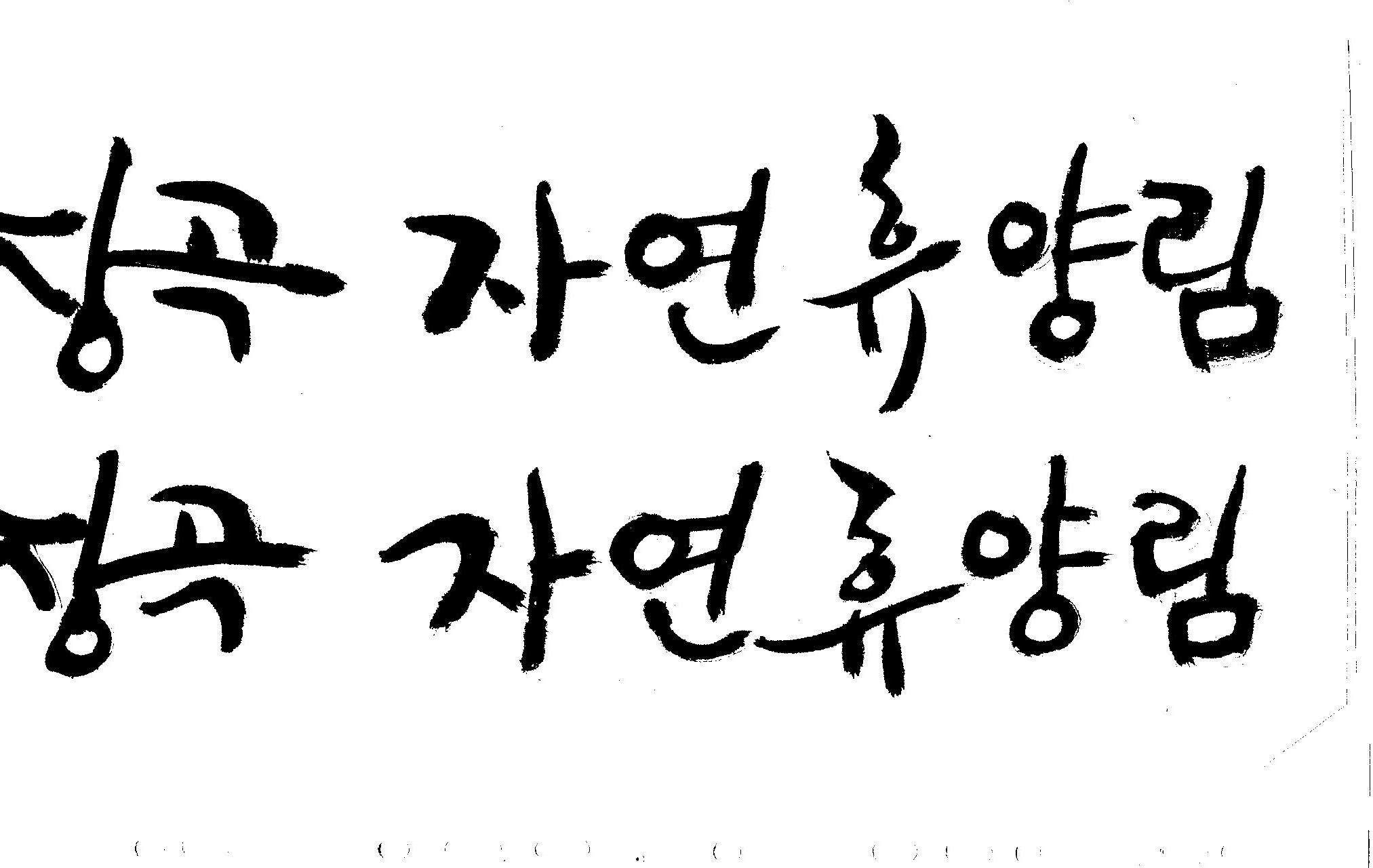캘리 부탁드려요~ 김철호 일반 1 10085 2008.12.25 23:24 > > 홈페이지 시안 작업중인데. > 메인으로 들어가는 폰트를 명조체로 넣었는데 좀 딱딱한 느낌이 들어 > 캘리로 쓰면 느낌이 좋을것 같아서 부탁드리게 됐습니다. > [장곡 자연휴양림] 이구요. > 홈페이지 시안으로 채택되면 결과물 보여드릴께요^^ > 추운겨울 감기 조심하시고 > 즐거운 크리스마스 되세요! > 감사합니다.. 유용하게 쓰시길... 글자수가 많아서 스캔이 잘렸네요.. 헷갈려서 중복되게 올라간것이 있을것인데.. 맞춰서 편집하세요..