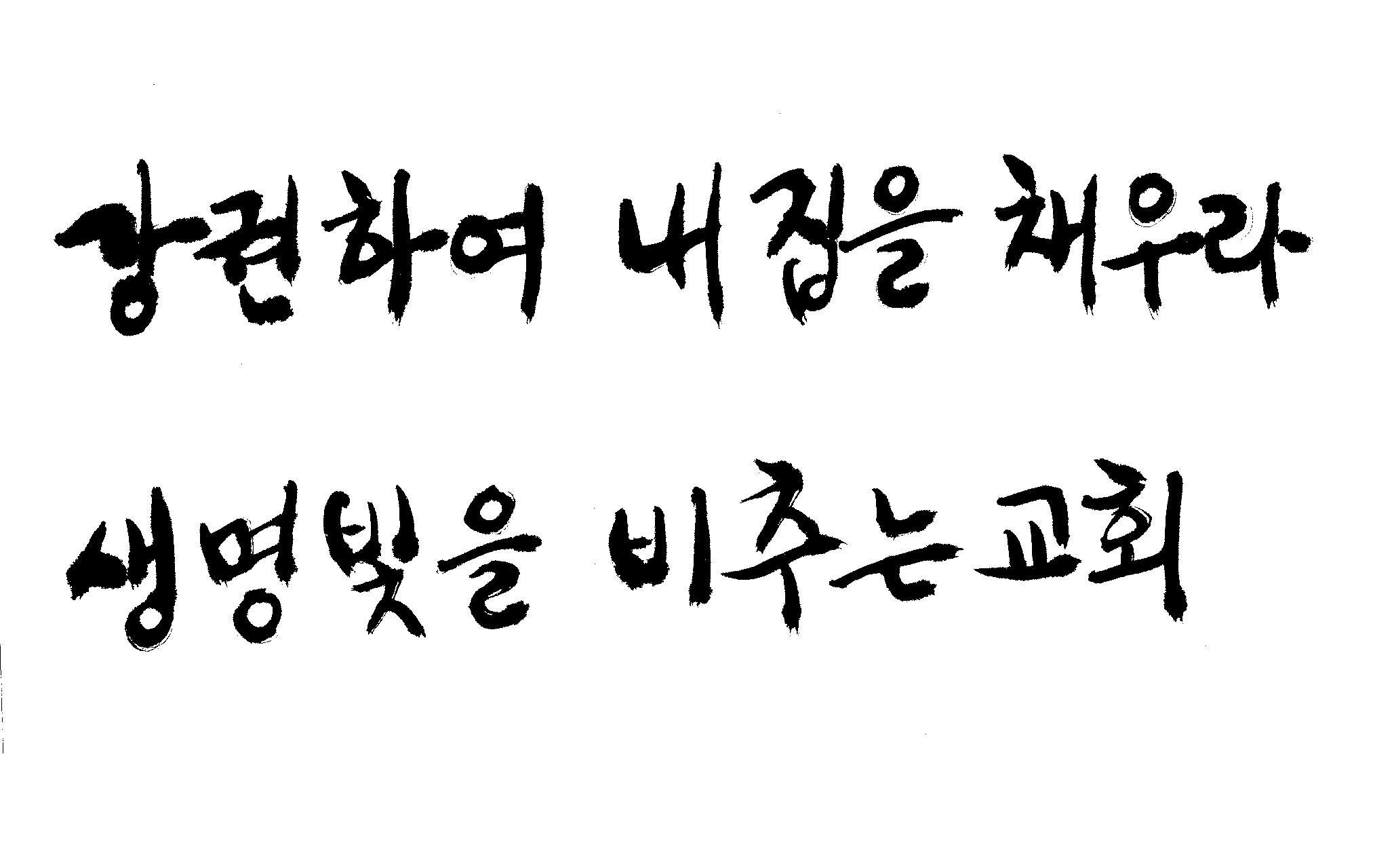캘리 좀 부탁드립니다.^^ 감사합니다. 김철호 일반 0 6812 2009.01.06 22:42 > > 교회에서 사용할 표어 제목입니다. > > 2009 강권하여 내 집을 채우라! > 2009 생명 빛을 비추는 교회 > > 예쁘게 부탁드려요! 새해 복 많이 받으세요!! ^^ > "2009"는 2쪽에 이소영씨 캘리요청에 올려 놓은것을 쓰세요 " 생명빛을"인데 "생명의 빛"이라고 했는데 편집하세요