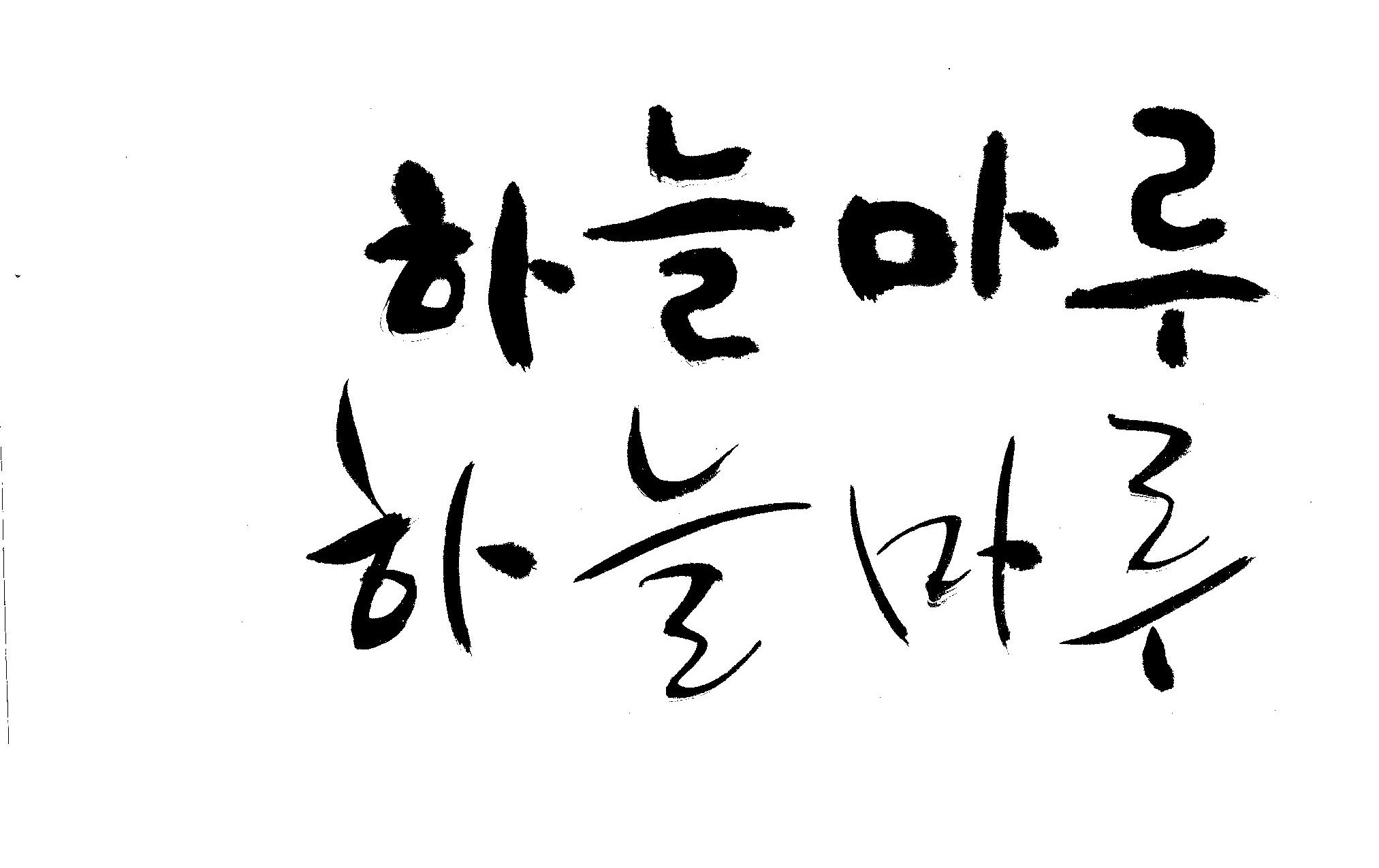 캘리 좀 부탁드립니다. 김철호 일반 0 9005 2009.02.16 23:14 > > "하늘마루" 라는 이름인데, 노인복지시설에서 발행하는 소식지 제목입니다. > 기존 서체와는 다른 고유한 이름을 정하고 싶어 이렇게 부탁드립니다. >