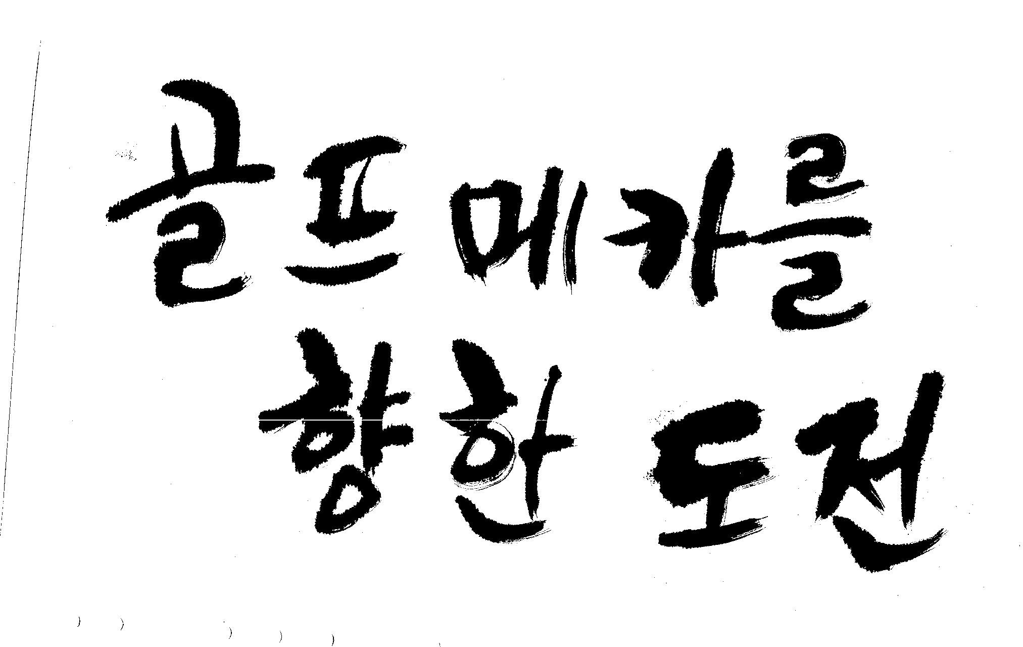 우경의 행복한 캘리세상-골프메카 김철호 일반 0 8373 2009.07.18 10:26 > > 리듬감을 최대한 살리고 ㅡ 스포츠의 운동감과 밝음 > 기교섞인 획을 배제--일반적인 느낌 > 굵기변화를 통하여 도전 낱말을 강조 > 스타일은 비슷하지만 ...한 사람이 썼으니까 ㅎㅎㅎ > 서로 다른 글꼴을 올린 것은... 비교하여 보시고... > 편집자에게 선택권을 주는 것입니다 >